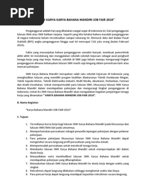 Proposal Job Fair from imgv2-2-f.scribdassets.com Bkk smk karya bahana mandiri. Maybe you would like to learn more about one of these? Check spelling or type a new query. We did not find results for: