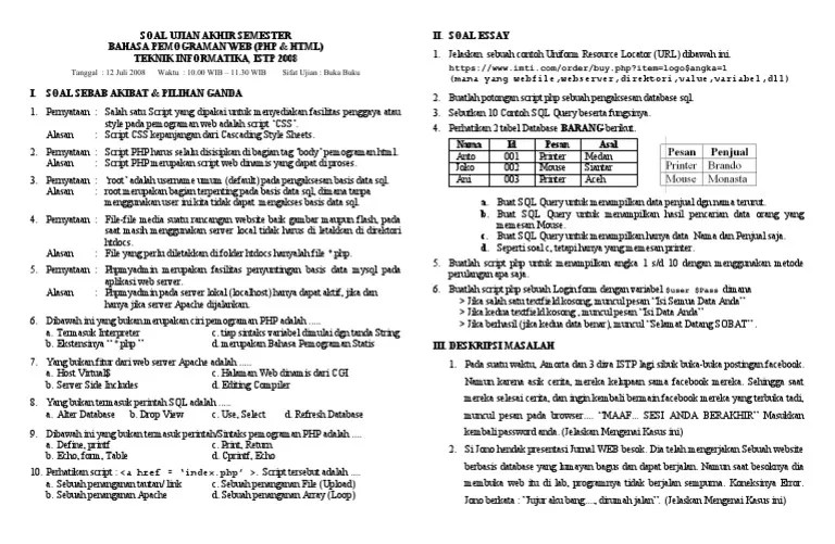 Tentunya anda harus mempelajari dan lebih mengenal tentang web. Contoh soal pemrograman web php beserta jawabannya. Dalam html table di buat dengan tag . Perintah html untuk membuat teks berjalan adalah… a. Seperti script html soal pilihan ganda sementara kami tidak membahas essay.
